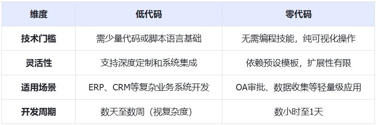 一、低代码与零代码平台定义与区别