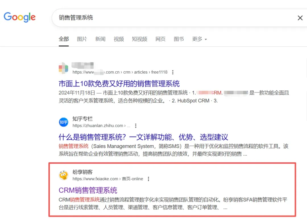 纷享销客的产品页排名为其带来了很多精准流量